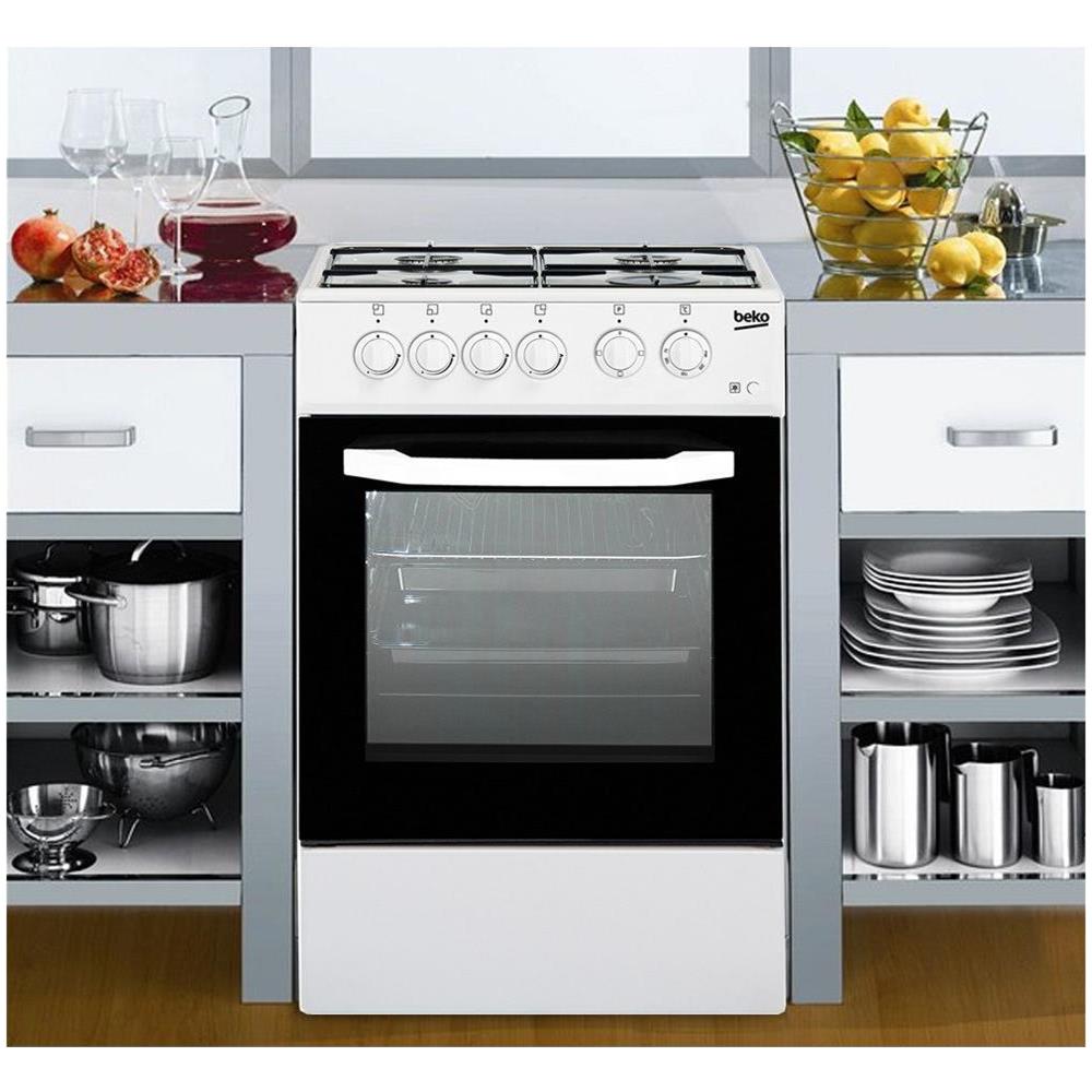 La Cucina a libera installazione Beko CSS42014FW è dotata di forno elettrico con luce interna. Coperchio in lamiera. Il piano cottura ha 4 bruciatori: Potenza anteriore sinistro 1 Kw, potenza anteriore destro 2,5 Kw, potenza posteriore sinistro 2 Kw, potenza posteriore destro 2 Kw. Il forno ha una tecnologia di controllo di tipo meccanico ed un sistema di cottura a gas, forno dotato di illuminazione. Nel caso in cui si spenga accidentalmente a causa di vento o del trabocco di liquidi, blocca automaticamente il flusso di gas. Il forno è dotato di sistema di cottura statico. Finitura interno ed esterno porta: Vetro. Finitura cavità: Smaltata. Dimensioni (A x L x P) 85 x 50 x 50 cm. Colore Bianco.